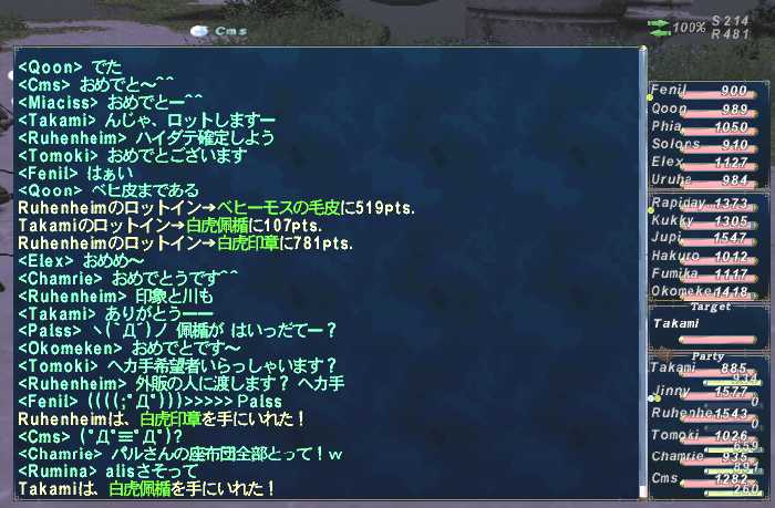まぁ、メンツのNashellもアトルガン前に引退しての最近復帰組で、アサルト全然やってないんでゆったり階級並べるところからですが