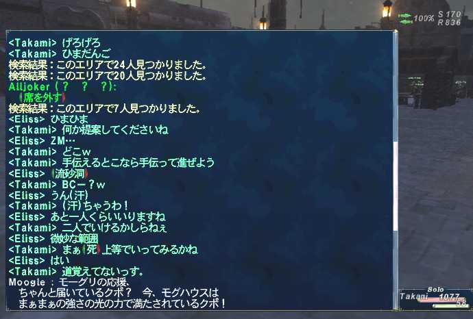 ちょっと夏風邪くらって外出出来ないんで、しぶしぶFFログインして、さっき尿のAF取り手伝ってきた。