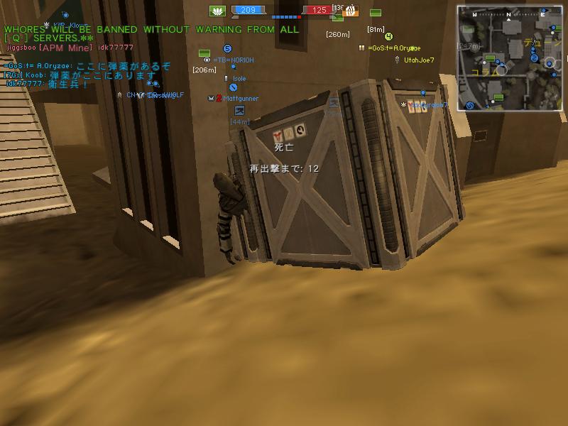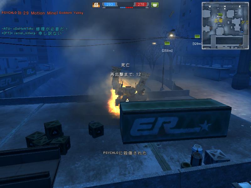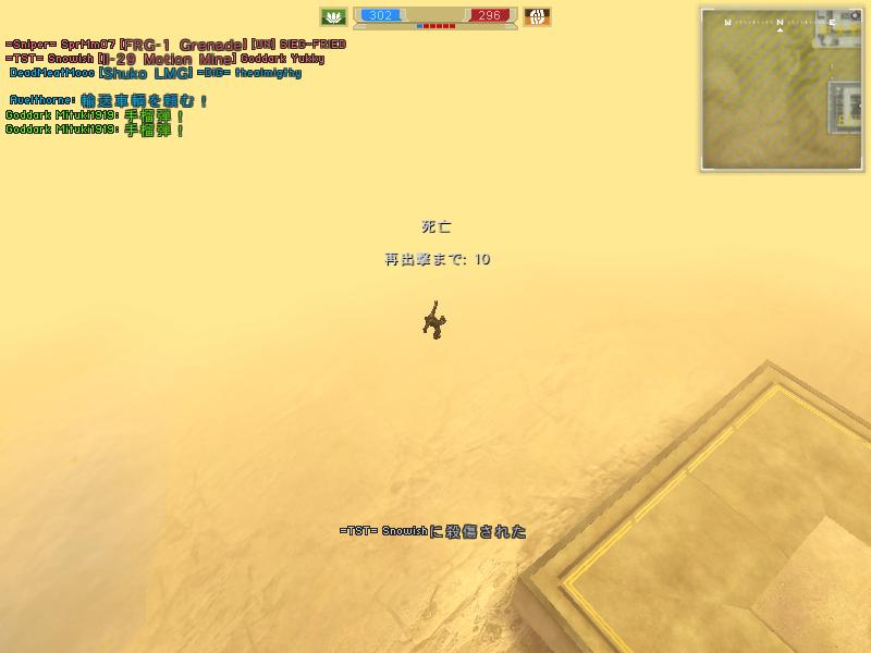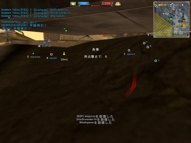 唯一ふいたのが、その後防御側にて、自分一人で数人相手に爆弾でけん制してたら馬鹿司令官が俺の上に補給物資落とす→「アアアァァァ"ッ!!」→Yukkyは死亡した。ログ