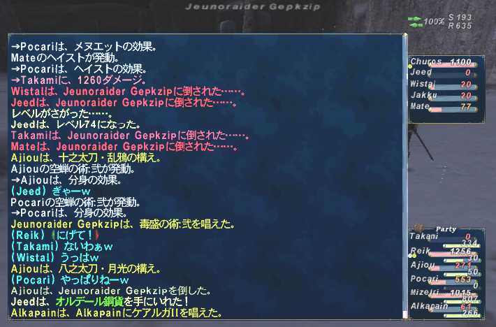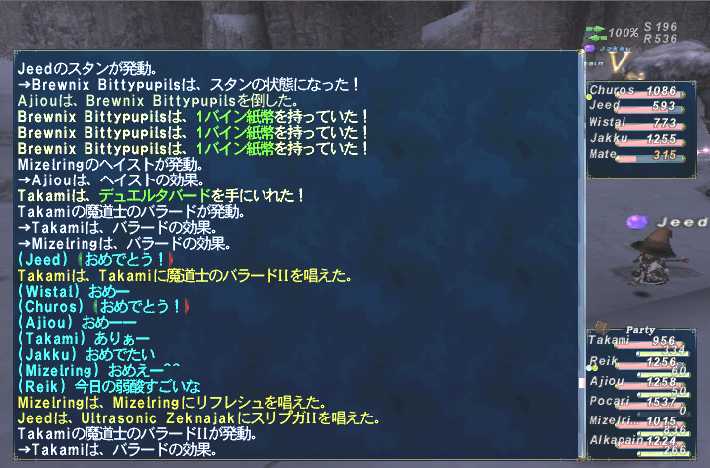 いつか取れるだろって感じでその日もJeedと二人でアス出たら勝負つーことで、各種2シメで身内5野良1の編成。最も野良の方は顔見知りだったんで、身内PTみたいなもんでしょうか。