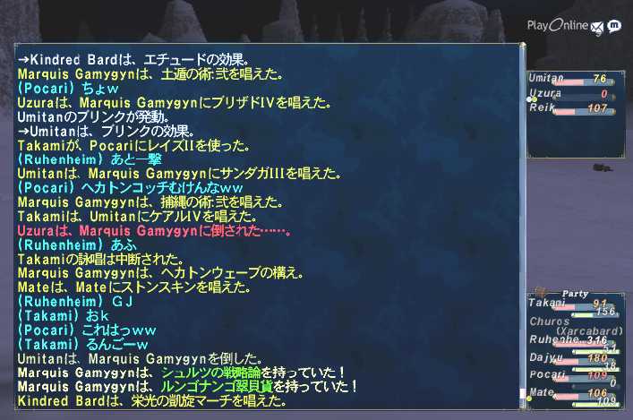 終了10分前から全員どきどきして雑魚をやってたんですが、ドロップもなくオーライで終わるところ