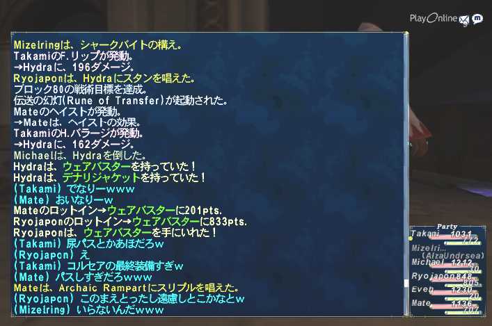 定期的にというか、固定メンバーと、その他チケ余る時は適当にJeedクンとかラチして野良やらぶちこんでナイズルへ装備狩りいっとるわけですが